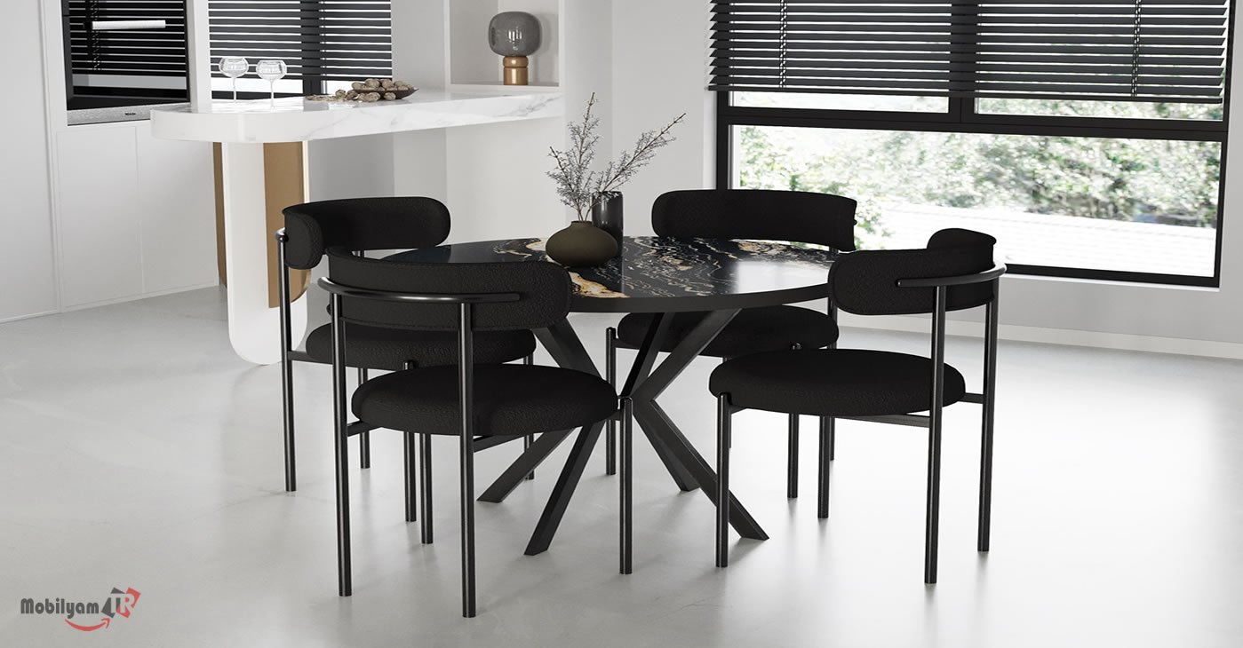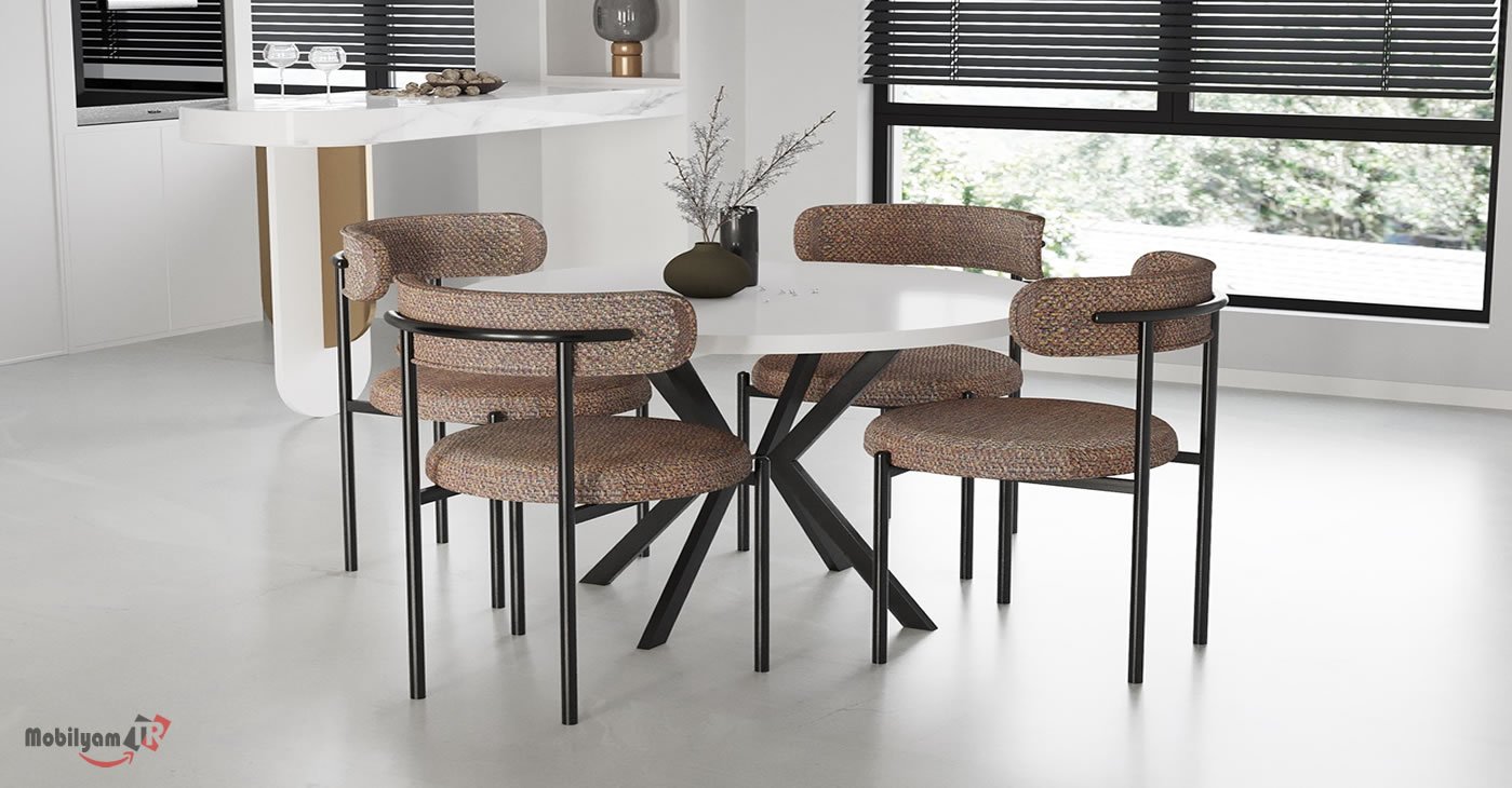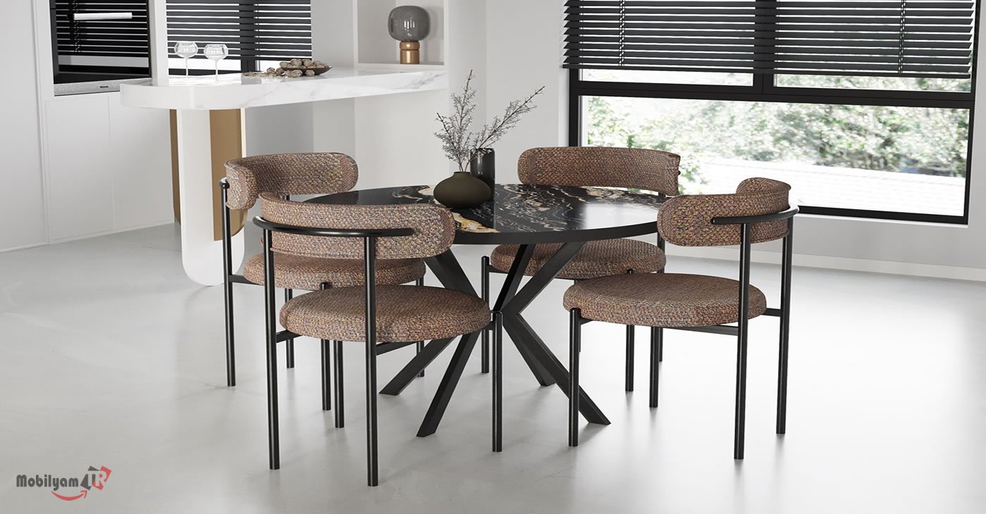 Ürünümüz 4 sandalye ve 1 masadan oluşan bir takımdır. Tüm kumaş renk seçenekleri mevcuttur. Masa ölçüsü 90 x 90 dır. | Ürün suntalam. | Ürün stok durumu mevcuttur.